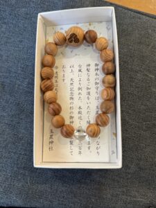 お守りに神社のブレスレットを購入。悪魔退散になればいいなぁ。早く仕事復帰できれば嬉しいです。