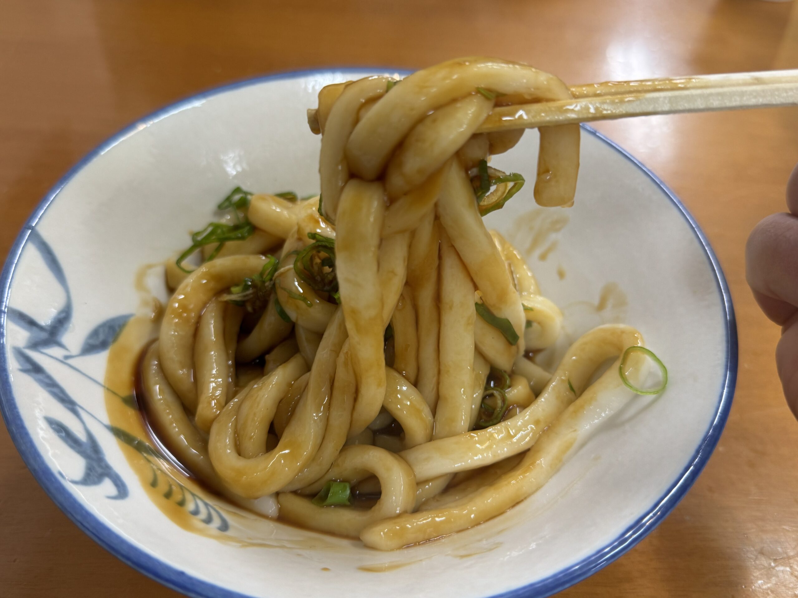 まったく腰がない讃岐うどんとは全く違う食べ物です。真っ黒で濃いそうな汁はそうでもなく一気に飲み干せる美味しさですよ。一度食べたら癖になりそう。